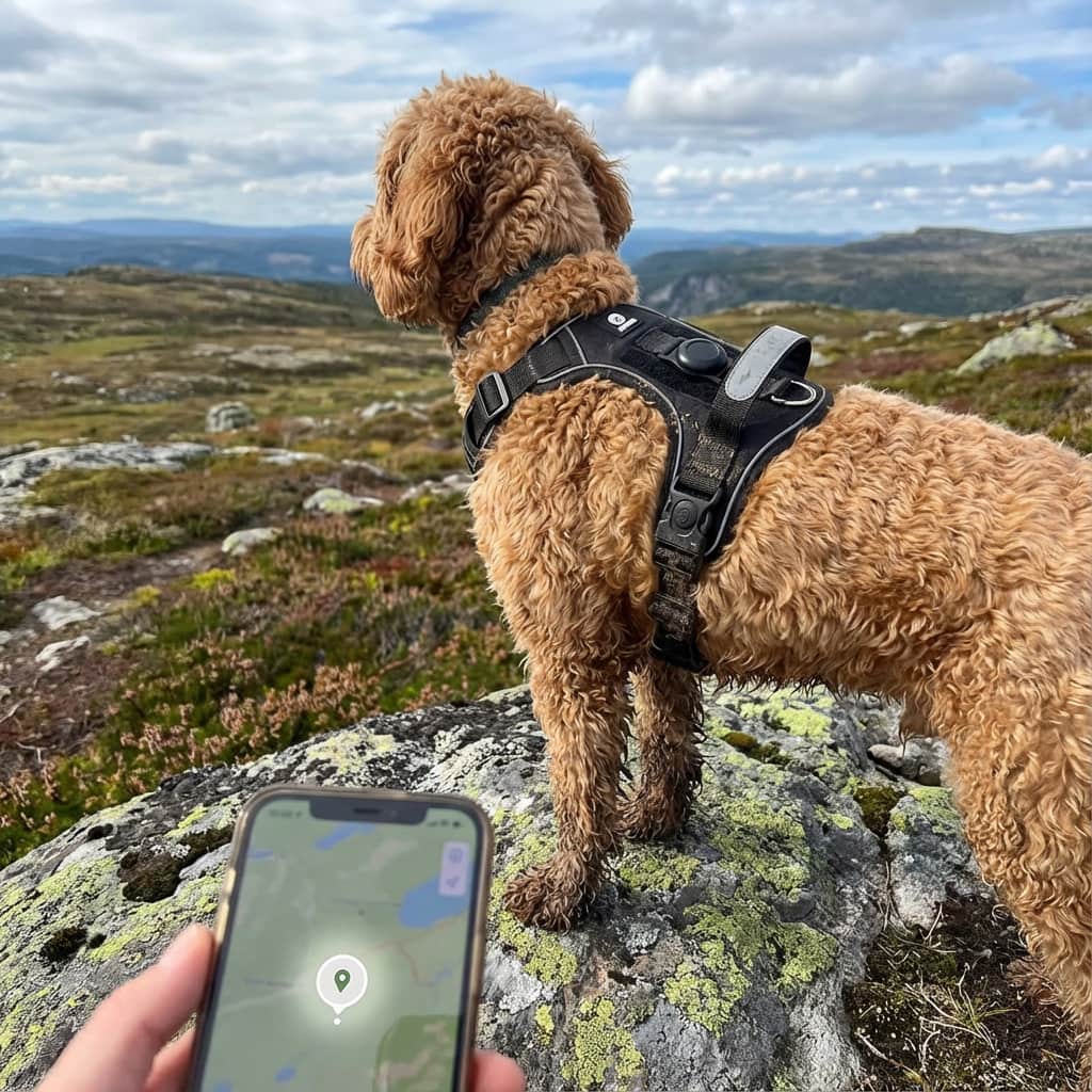 Når hunden får løpe fritt, er det godt å vite at du kan finne den raskt igjen. Derfor har Rolig TurSele en beskyttet lomme på ryggen, til AirTag eller andre sporingsbrikker.